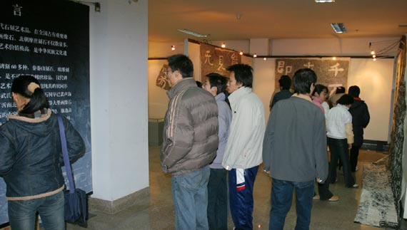 山東地區遺存的古代石刻藝術品,在全國占有重要地位。其中秦漢碑刻、漢畫像石、北朝摩崖刻石不僅數量多,內容豐富,而且歷史、藝術價值極高,是中華民族文化遺產的瑰寶,今次展覽主要圍繞以上幾方面內容展開。我們看到,這些石刻拓片,或鴻篇巨制,莊嚴肅穆;或信手揮灑,輕松活潑,令同學們在感慨古齊魯文化博大精深的同時也增長了自己的專業知識。
