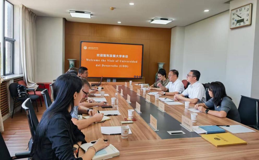 董占軍代表學校致歡迎辭,并從辦學歷史、學科優勢、國際交流等方面介紹學校總體情況。他指出,智利是最早與中國簽署共建“一帶一路”合作諒解備忘錄的拉美國家之一,是“一帶一路”在拉美地區的重要節點。兩校已在合作科研、學術交流等方面取得了豐碩成果,期待雙方繼續在學生實習、合作辦學等領域深化合作,促進人文交流和民心相通。
