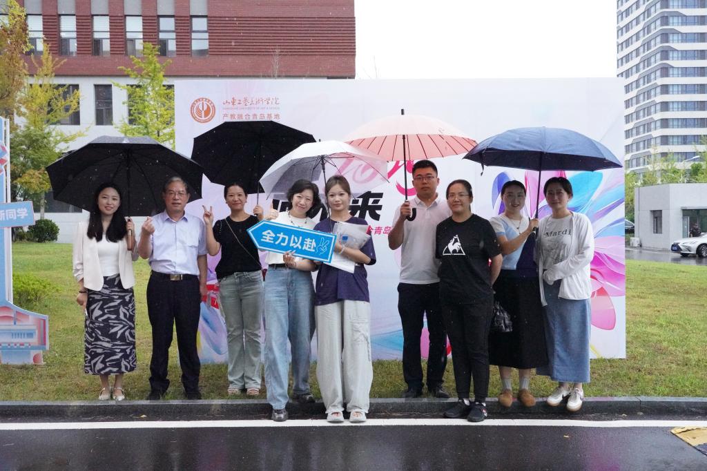 為了給新生們留下獨特的體驗,各學院特色迎新,創意無限:視覺傳達設計學院為335名本科生和52名研究生精心定制了專屬IP形象徽章,將個人特色和潮流元素相融合,滿足Z世代年輕人的佩戴偏好;建筑與景觀設計學院用全國各地著名建筑物的簡約畫作為填充設計了一張全國地圖,新生在自己家鄉的小旗子上簽上自己的名字,象征著“五湖四海來相會 建筑學子一家親”的美好寓意;工業設計學院以“趣味互動,融入山工藝”為核心,通過探索式問答闖關環節,解讀學校“天工開物,匠心獨運”的校訓與“為人民而設計”的理念,傳遞學校學術精神與文化內核;服裝學院除為新生準備專屬禮包外,還設置“衣夢起航”“指紋樹手印畫”環節,傳遞“因熱愛而相聚,因共創而相連”的理念;造型藝術學院為每一位新生準備了定制書簽,寄托著對新生“書香致遠、藝海揚帆”的美好祝愿,創意十足的簽名背景墻,定格下與學院初見的美好瞬間;現代手工藝術學院融合專業特色與非遺文化,讓新生在“串珠成線”互動和擊鼓儀式中,沉浸式體驗感受手工藝魅力,開啟藝術人生新篇章;數字藝術與傳媒學院以“服務+創意”雙驅動,打造有溫度、有巧思的迎新體驗,精心準備的浪浪山小妖怪盲盒,讓驚喜與溫暖陪伴嶄新的“數字人”開啟旅程;人文藝術學院強調“藝術浸潤+人文關懷”,將專業特色與新生報到場景深度融合,實體心愿箱收集新生對未來自己的寄語,讓迎新過程成為新生感知學院文化、激發藝術熱情的第一堂課;千佛山校區以非遺漆藝書簽為核心載體,精心策劃“漆待相遇,簽手同行”特色活動,邀請新生親手參與制作,在體驗傳統工藝魅力的同時,開啟一段獨特的大學記憶;產教融合青島基地致力于打造“有溫度、有深度、有創意”的迎新活動,由教師、學長組成的“迎新服務隊”全程護航,提供“一站式”閉環服務,讓新生在互動中感受專業魅力,快速融入大學生活。