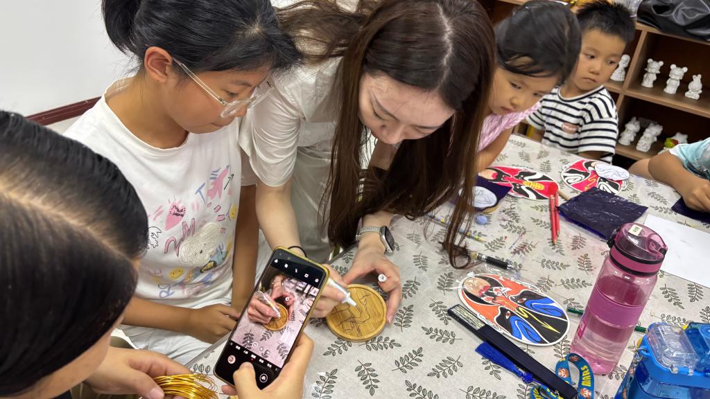 在煙臺市,產教融合青島基地的武倩與張曉林兩位老師帶來了一場別開生面的非遺盛宴。清晨的陽光透過玻璃窗,為活動現場鍍上一層溫暖的金色。京劇臉譜繪畫區,武老師正手持畫筆,細致講解臉譜色彩的象征意義:“紅色代表忠勇,黑色象征剛直......”話音未落,學員們已迫不及待地拿起畫筆,在素白臉譜上勾勒屬于自己的“國粹印象”。在掐絲琺瑯制作區,張老師將傳統工藝化繁為簡,帶領學員們體驗“調色-掐絲-點藍”的流程。年輕父母與孩子頭碰頭,共同創作屬于他們的琺瑯作品。活動結束時,一位家長捧著作品感慨:“這不僅是手藝的傳承,更讓我們找回了久違的親子時光。”