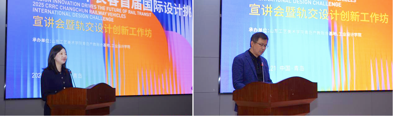 10月21日,2025中車長客首屆國際設(shè)計(jì)挑戰(zhàn)賽宣講會(huì)暨軌交設(shè)計(jì)創(chuàng)新工作坊啟動(dòng)儀式,在我校產(chǎn)教融合青島基地國際交流中心學(xué)術(shù)報(bào)告廳舉辦。學(xué)校領(lǐng)導(dǎo)苗新民出席儀式。