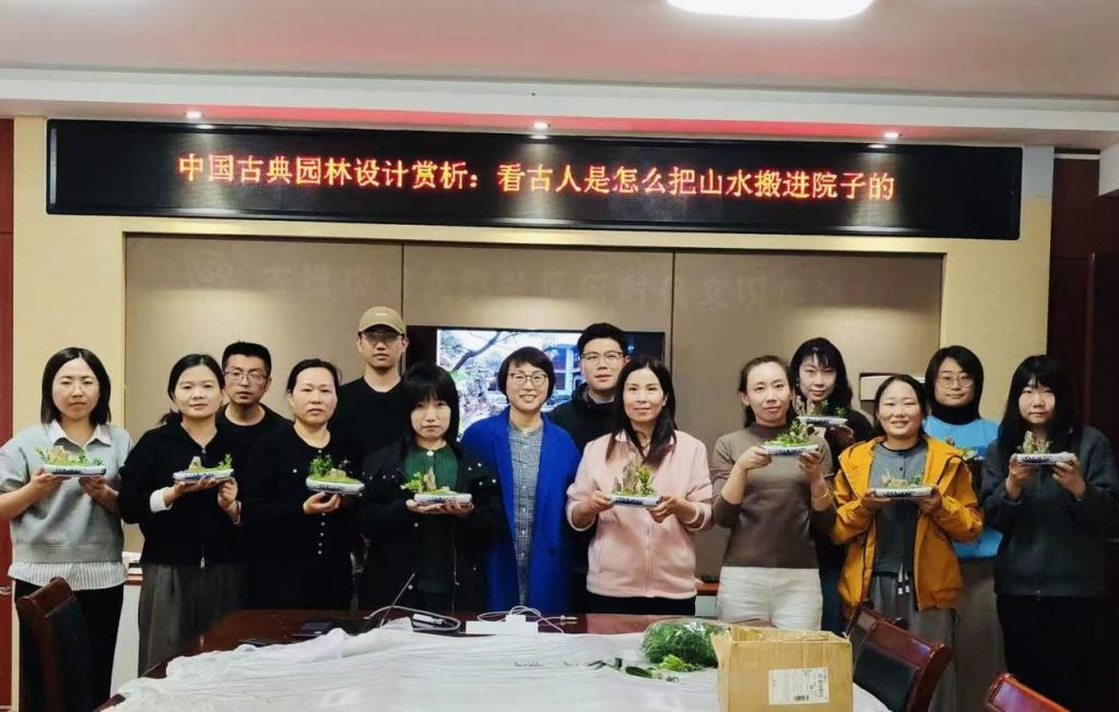 “您說得對,古人造園講究‘以小見大’,這一方天地也能展現萬里河山。”在濟寧社區的課堂上,另一番雅致的景致正在鋪展。建筑與景觀設計學院的呂桂菊老師帶領研究生團隊,以網師園為范本,通過“園林尋寶”互動環節,向居民生動闡釋古人的造園智慧。在老師的指導下,居民們巧用山石、沙土與綠植,將古典詩詞的意境融入親手打造的微型園林中。一抔土、幾塊石,經過精心布局,一幅詩意盎然的山水畫卷已映入眼簾。這方寸之間的造景,既是居民對古典美學的鮮活詮釋,更是美育融入生活的生動注腳。