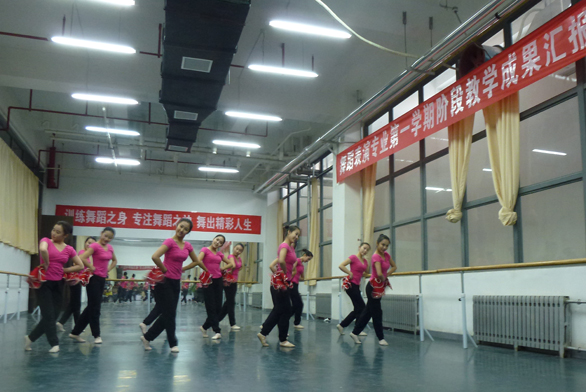 1月8日下午,服裝學(xué)院在教學(xué)樓舞蹈表演室舉辦首屆舞蹈表演專業(yè)階段教學(xué)成果匯報(bào)表演。2013級(jí)舞蹈專業(yè)十四名學(xué)生參加了表演,對(duì)第一學(xué)期階段教學(xué)成果進(jìn)行集中展示。副院長(zhǎng)苗登宇到現(xiàn)場(chǎng)觀摩表演。