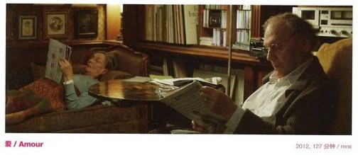 :展映2012年戛納電影節的金棕櫚大獎的法語片《愛》。該片包攬了2013 年凱撒獎的最佳影片、最佳導演、最佳男主角、最佳女主角、最佳原創劇本五項大獎,并且是2013 年奧斯卡最佳外語片。