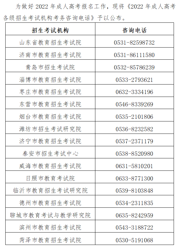 2022年成人高考各級招生考試機構考務咨詢電話