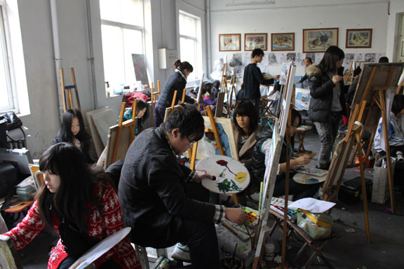 從陽光遍地、書聲朗朗的清晨到月光漫地、寂然無聲的深夜;從教室到畫室,都是他們埋頭苦讀,全神貫注的身影------