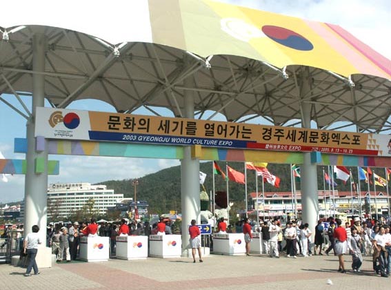 慶州位于韓國慶尚北道的東南部,距韓國第三大城市大邱約70公里,是韓國佛教文化鼎盛時期的代表,也是有名的故都。為創(chuàng)造引導(dǎo)21世紀的新文化,慶尚北道與慶州市共同舉辦世界文化博覽會,使過熱追求產(chǎn)業(yè)化過程中被破壞和丟棄的文化遺產(chǎn)重放光輝。博覽會每兩年舉行一次。