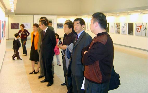 院長、李新副院長,裝潢系王進生書記、苗登宇副主任,科研處胡希佳處長和職業技術學院石增泉副院長,韓國大邱市視覺設計協會崔仁壽會長、遲龍善秘書長及著名文化交流活動家何傳乾先生為開幕式剪彩。中韓設計家一同觀看了展覽。