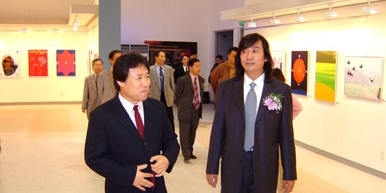 當(dāng)?shù)貢r(shí)間2003年10月8日下午,題為“文化之香氣”的中韓文化交流主題海報(bào)設(shè)計(jì)展,于韓國慶尚北道的慶州世界文化博覽會館舉行了第一部分展覽的開幕式,參加開幕式的韓方代表有大邱視覺設(shè)計(jì)協(xié)會會長崔仁壽先生、前會長權(quán)相玖先生、當(dāng)?shù)孛绤f(xié)主席、相關(guān)設(shè)計(jì)院校負(fù)責(zé)人、設(shè)計(jì)院校的學(xué)生以及著名的文化交流使者何傳乾先生等,中方代表有歡迎來到公海7108線路裝潢設(shè)計(jì)系副主任苗登宇先生、教研室主任趙培生先生、孫大剛先生、侯立平女士等。