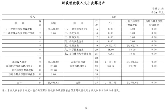 第四部分名詞解釋一、財政撥款收入:指由省級財政當年撥付的資金。按現行管理制度,省級部門決算中反映的財政撥款包括一般公共預算財政撥款和政府性基金財政撥款。二、上級補助收入:指事業單位從主管部門和上級單位取得的非財政補助收入。三、事業收入:指事業單位開展專業業務活動及其輔助活動取得的收入。包括事業單位收到的財政專戶實際核撥的教育收費等。四、經營收入:指事業單位在專業業務活動及其輔助活動之外開展非獨立核算經營活動取得的收入。五、附屬單位上繳收入:指事業單位附屬獨立核算單位按照有關規定上繳的收入。六、其他收入:指單位取得的除上述“財政撥款收入”、“上級補助收入”、“事業收入”、“經營收入”、“附屬單位上繳收入”等以外的各項收入。七、用事業基金彌補收支差額:指事業單位在預計用當年的“財政撥款收入”、“財政撥款結轉和結余資金”、“事業收入”、“事業單位經營收入”、“其他收入”等不足以安排當年支出的情況下,使用以前年度積累的事業基金(事業單位當年收支相抵后按國家規定提取、用于彌補以后年度收支差額的基金)彌補本年度收支缺口的資金。八、年初結轉和結余:指以前年度尚未完成、結轉到本年仍按原規定用途繼續使用的資金,或項目已完成等產生的結余資金。九、結余分配:指事業單位按照《事業單位會計制度》的規定從非財政補助結余中分配的事業基金和職工福利基金等。十、年末結轉和結余:指單位按照有關規定結轉到下年繼續使用的資金,或項目已完成等產生的結余資金。十一、基本支出:指單位為保障其機構正常運轉、完成日常工作任務而發生的各項支出。十二、項目支出:指單位在基本支出之外為完成特定的工作任務或事業發展目標所發生的支出。十三、經營支出:指事業單位在專業業務活動及其輔助活動之外開展非獨立核算經營活動發生的支出。十四、“三公”經費:指省級部門用財政撥款安排的因公出國(境)費、公務用車購置及運行費和公務接待費。其中,因公出國(境)費反映單位公務出國(境)的差旅費、伙食補助費、雜費、培訓費等支出;公務用車購置及運行費反映單位公務用車購置費(含車輛購置稅)及租用費、燃料費、維修費、過路過橋費、保險費等支出;公務接待費反映單位按規定開支的各類公務接待(含外賓接待)支出。十五、機關運行經費:為保障行政單位(含參照公務員法管理的事業單位)運行用于購買貨物和服務的各項資金,包括辦公費、印刷費、咨詢費、手續費、水費、電費、郵電費、取暖費、物業管理費、差旅費、因公出國(境)費、維修(護)費、租賃費、會議費、培訓費、公務接待費、專用材料費、勞務費、委托業務費、工會經費、福利費、公務用車運行維護費以及其他費用等。