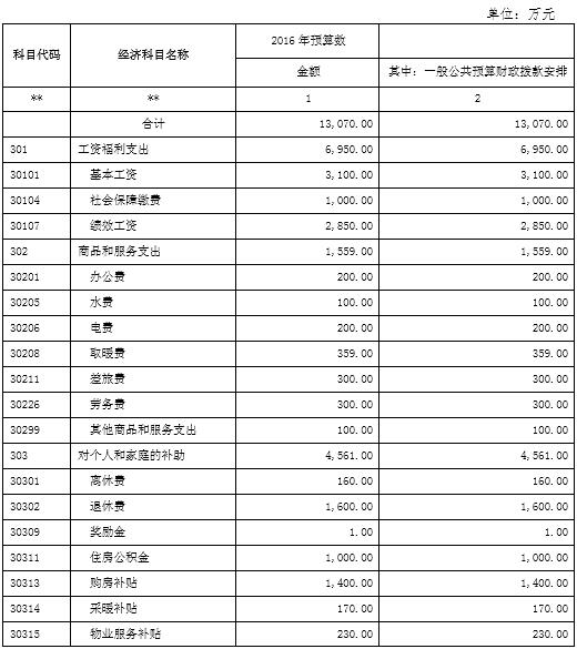 八、2016年財政撥款安排的基本支出預算表