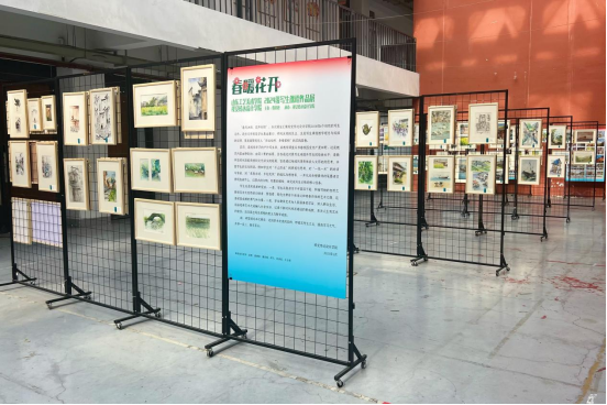 本次展覽以“春暖花開”為主題,第一板塊集中呈現視覺傳達設計專業學生赴威海、婺源、景德鎮等地的寫生成果,涵蓋速寫、水彩、水粉、場景構圖等作品。學生將自然景觀與文化考察深度融合,以粗獷線條刻畫山體肌理,以自由的筆觸描繪碧海藍天,以圖文形式記錄了從觀察、構思到技法實踐的全過程,展現藝術思維的成長軌跡。課程通過“實地寫生+文化研習”模式,引導學生突破課堂局限,提升了對形態、色彩、空間的感知力與表現力。指導老師有曲展、姜建勛、唐國峻、邱飛、劉澤延、王士順。