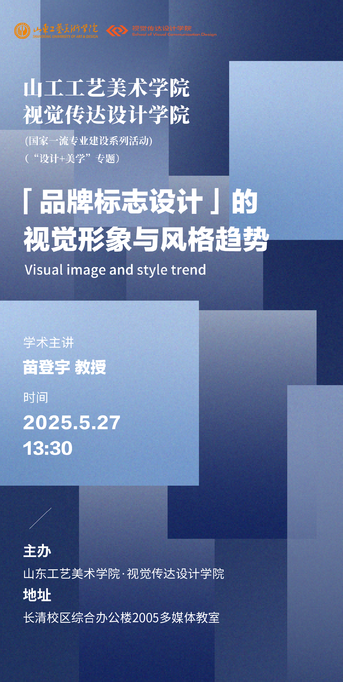 5月27日,在視覺傳達設計學院國家一流專業建設系列活動中,苗登宇教授擔任主講,為學院師生帶來一場《品牌標志設計的視覺形象與風格趨勢》專題講座。