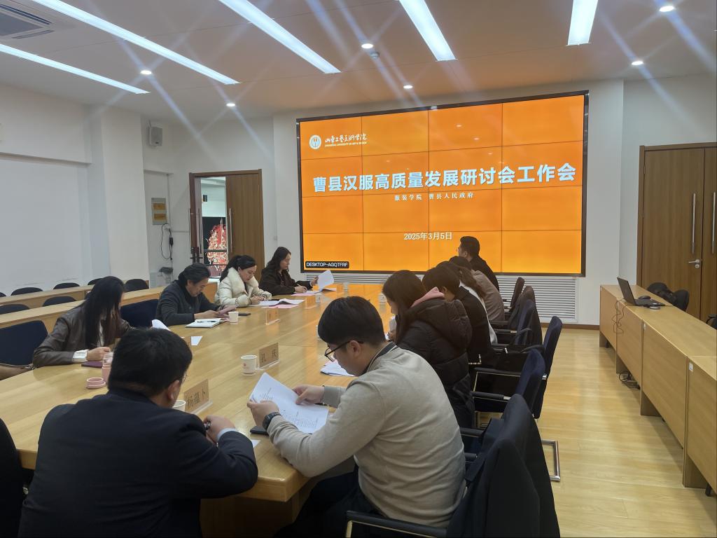 3月5日下午,“曹縣漢服高質量發展研討會”推進會于第三會議室成功舉辦。曹縣縣委常委、縣委宣傳部長王倩,曹縣縣委宣傳部副部長、文明辦主任張美玉,曹縣電商服務中心主任張龍飛,曹縣縣委宣傳部辦公室主任楊蘊卜,菏澤市廣播電視臺新媒體中心主任王碩,菏澤市廣播電視臺新媒體中心運營部主任孔慶以及服裝學院相關工作人員出席了本次會議,會議由服裝學院院長李杰主持。
