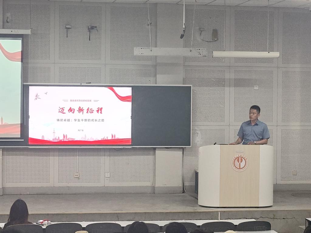 劉廣棟在講座中指出,學生干部不僅是學院學生工作的中堅力量,更是連接師生、傳遞信息的橋梁和紐帶。作為學生干部,要時刻保持對黨忠誠、對學院負責、對同學關愛,充分發揮表率作用,以身作則,起好帶頭作用。同時,他鼓勵學生干部們要敢于擔當、勇于創新,不斷提升自己的綜合素質和能力水平,努力成為新時代有理想、有本領、有擔當的青年人。