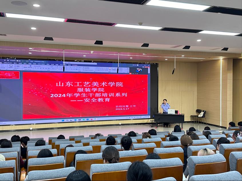 2024年5月17日下午,服裝學院干部培訓之安全教育于第一階梯教室成功召開。此次培訓由服裝學院團總支書記王蘇主持,特邀濟南市公安局長清區公安分局駐校民警王華為學生講解,旨在全面提升大學生干部的安全意識和應對能力,為校園的和諧穩定保駕護航。