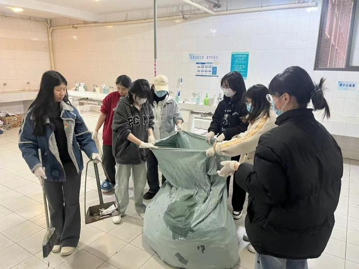 活動(dòng)中,全體學(xué)生黨員佩戴黨徽,亮出黨員身份,按照劃分的衛(wèi)生區(qū)域進(jìn)行打掃。學(xué)生黨員們干勁十足,不放過任何一個(gè)衛(wèi)生死角,認(rèn)真打掃廁所堆放的垃圾、雜物。學(xué)生黨員以身作則、自覺地將垃圾帶下樓,充分發(fā)揚(yáng)不怕苦、不怕累、不怕臟的精神,保持自己宿舍及廁所公共區(qū)域的環(huán)境衛(wèi)生整潔,及時(shí)做到垃圾清理,與同學(xué)們共創(chuàng)美好空間。