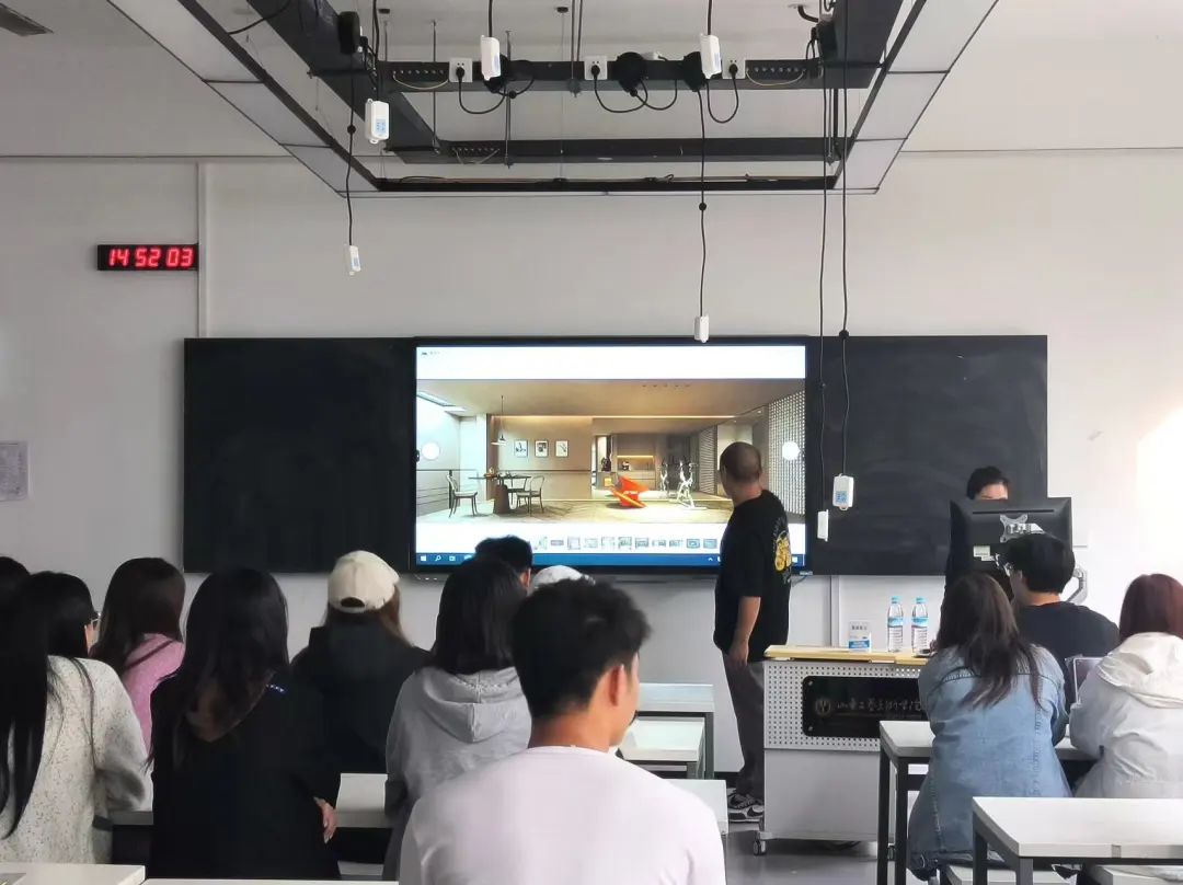 活動開始,公司人力資源負(fù)責(zé)人為同學(xué)們播放了公司的宣傳演短片,介紹了公司的基本情況和發(fā)展歷程。隨后,邢寶生從公司業(yè)務(wù)需求、招聘專業(yè)以及薪資待遇等方面展開宣講,并以公司項目案例為例,向同學(xué)們展示了項目方案、施工圖、效果圖等詳細(xì)內(nèi)容,深入介紹了公司工作模式、行業(yè)現(xiàn)狀,并耐心解答了同學(xué)們提出的問題。