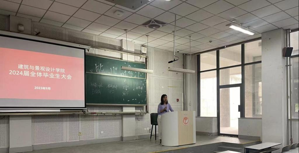 為做好2024屆畢業生工作,引導畢業班學生做好個人規劃,9月7日下午,建筑與景觀設計學院于四合堂召開2024屆畢業生第一次年級大會。會議由畢業生輔導員韓曉旭主持,學院教學秘書路濱西、全體2024屆畢業生參加。