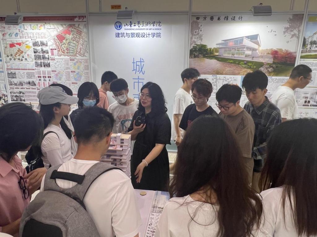 建筑學專業張春單老師將2022級建筑學專業學生的《設計表達》課程搬進了畢業設計展現場,進行了一堂生動的現場教學。在展覽現場,學生可以直觀地看到設計表達的各種形式,對于開闊學生視野、提高學生的審美有很好的作用。