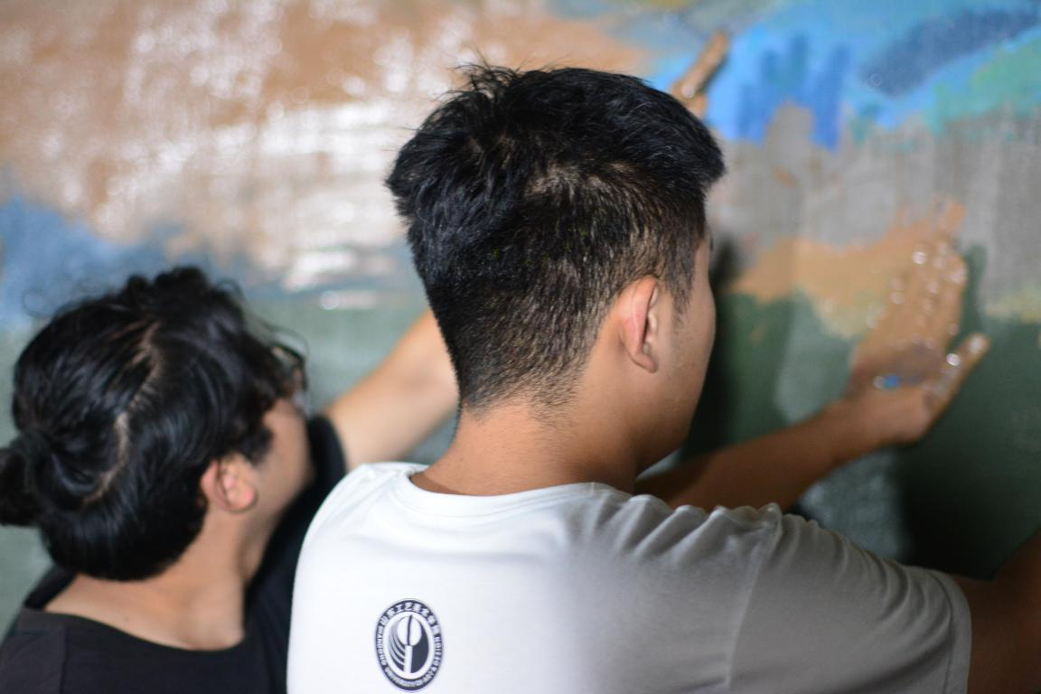 據實地考察調研,山東省濟寧市泗水縣常年在外務工人員14萬余人,占全縣總人口的22%,留下了大量年邁老人留守家鄉,他們經濟收入低,生活質量差,安全隱患多。在此背景下,中冊鎮敬老院由當地政府牽頭、依托基層黨組織建立而成。為進一步弘揚敬老、愛老、尊老的傳統美德,在團縣委的大力支持下,社會實踐團隊在中冊鎮敬老院外墻進行宣傳畫創作與繪制。