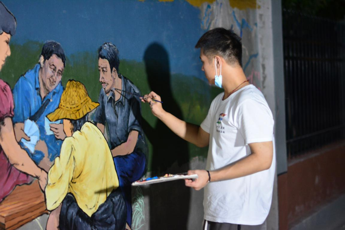 20級工藝美術劉子墨:在中冊敬老院居住的這些日子,老人給我們訴說了他們的青春歲月,在老人的言語間透漏著對青春的向往和懷念。此次墻繪志愿活動用我們的綿薄之力為老人們留下了一份回憶,更是為我們“三下鄉”社會實踐畫上了圓滿的句號。