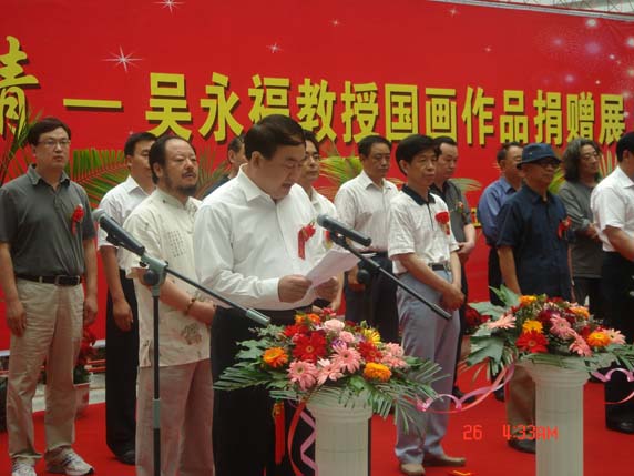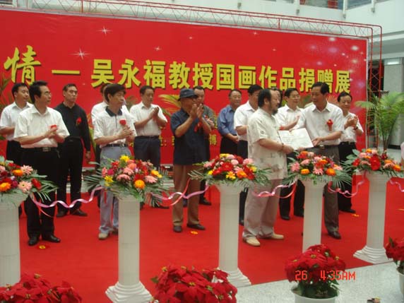 吳永福教授,山東榮成市人,現為我校現代手工藝術研究所所長,中國美術家協會會員,山東省美術家協會理事。本次展覽共展出吳永福教授國畫作品187幅,展覽結束后捐贈給榮成市委市政府20幅作品,捐贈給榮成市博物館作為永久收藏的精品力作21幅。展覽取得了圓滿成功,獲得社會各界的一致好評。