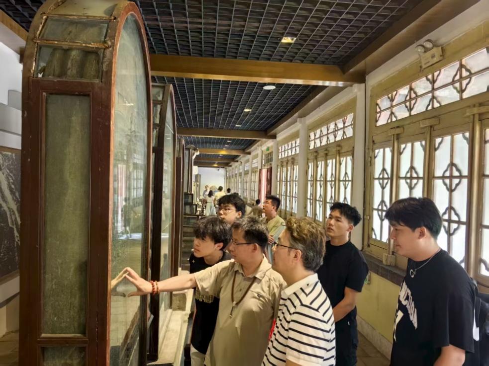 (圖為團隊成員接觸碑刻實物并聽老師一一講解)