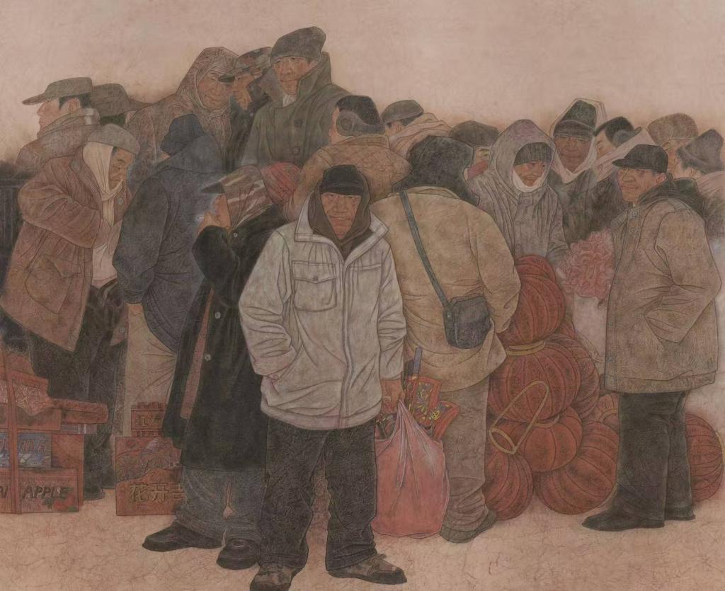 丁雷《堤岸大集的男人們》190x230cm中國畫