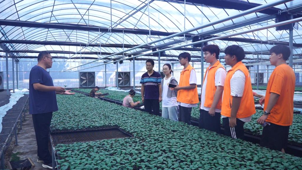 7月17日下午,團隊師生參觀調研了綠島農業黃瓜育苗基地。企業負責人謝瑞坤介紹了黃瓜種苗繁育、產業規模發展情況,并帶領師生參觀了省級現代農業產業園項目支持的新型育苗連棟溫室,同學們現場與農技人員交流,詳細了解辛集黃瓜全產業鏈發展現狀。