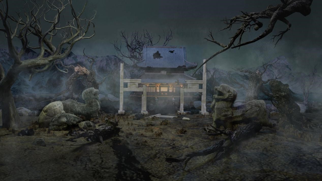 《京郊古剎》場景的主題為因東漢末年戰(zhàn)亂而被摧毀的破敗白馬寺。我們的靈感來源參考了插畫《妖面行》中的氣氛和殘破的視覺效果也參考了電影及游戲《倩女幽魂》中的蘭若寺整體布局和寺廟光影、以及蘭若寺妖異恐怖的氣氛。我們給作品賦予的創(chuàng)作背景是:東漢末年黃巾軍起義,對白馬寺拆廟破像進(jìn)行了屠殺和焚燒。白馬寺在之后戰(zhàn)亂中被廢棄變得殘破荒廢,同時(shí)白馬寺遭遇的大屠殺讓原本莊重祥和的寺廟沾染了許多血腥和人命,變成了荒涼的“鬼寺”。再累不荒廟,再餓不吃墳供。深山中無人問津的破廟居然亮起了奇異的燈光吸引人前往。門前造型奇特像厲鬼爪子般的枯樹、迷蒙濃厚的霧氣、曖昧的燈光和殘破的搖搖欲墜的吊橋,似乎都訴說著這座破廟的不尋常。白馬寺是佛教傳入中國后興建的第一座官辦寺廟。自東漢至文革時(shí)期,幾經(jīng)焚燒破壞歷經(jīng)興衰卻依舊風(fēng)骨猶存。希望通過我們的作品,能夠引起大家對中國佛教歷史起源的興趣。