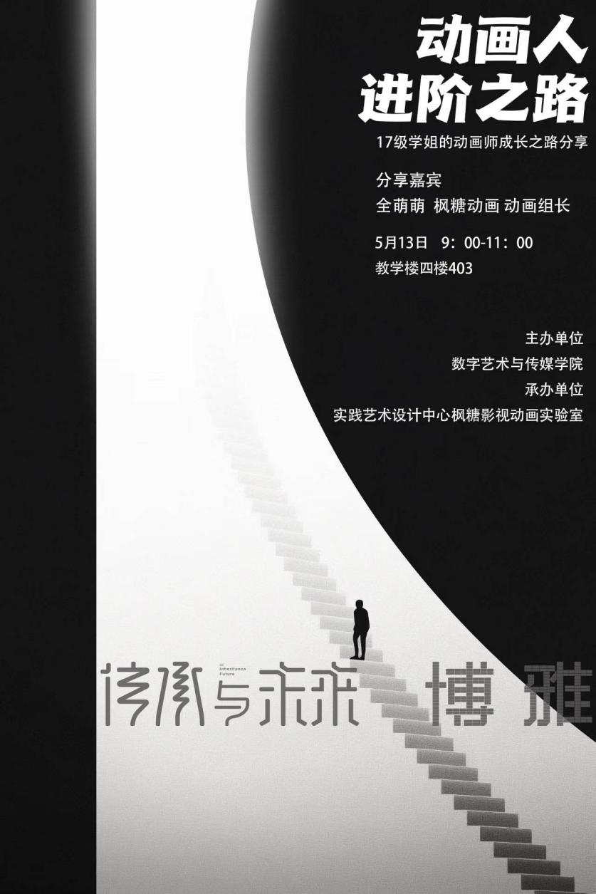 5月13日,數字藝術與傳媒學院動畫教研室在1號教學樓B403教室舉辦《動畫人的進階之路》成長分享講座,講座由動畫教研室副主任艾琳主持,講座邀請到了我院2017級動畫專業畢業生,現就業于楓糖動畫公司的動畫組長全萌萌作為主講人,就所在公司企業發展,自身學習知識與行業工作融合經驗的歷程進行了深入的講解。