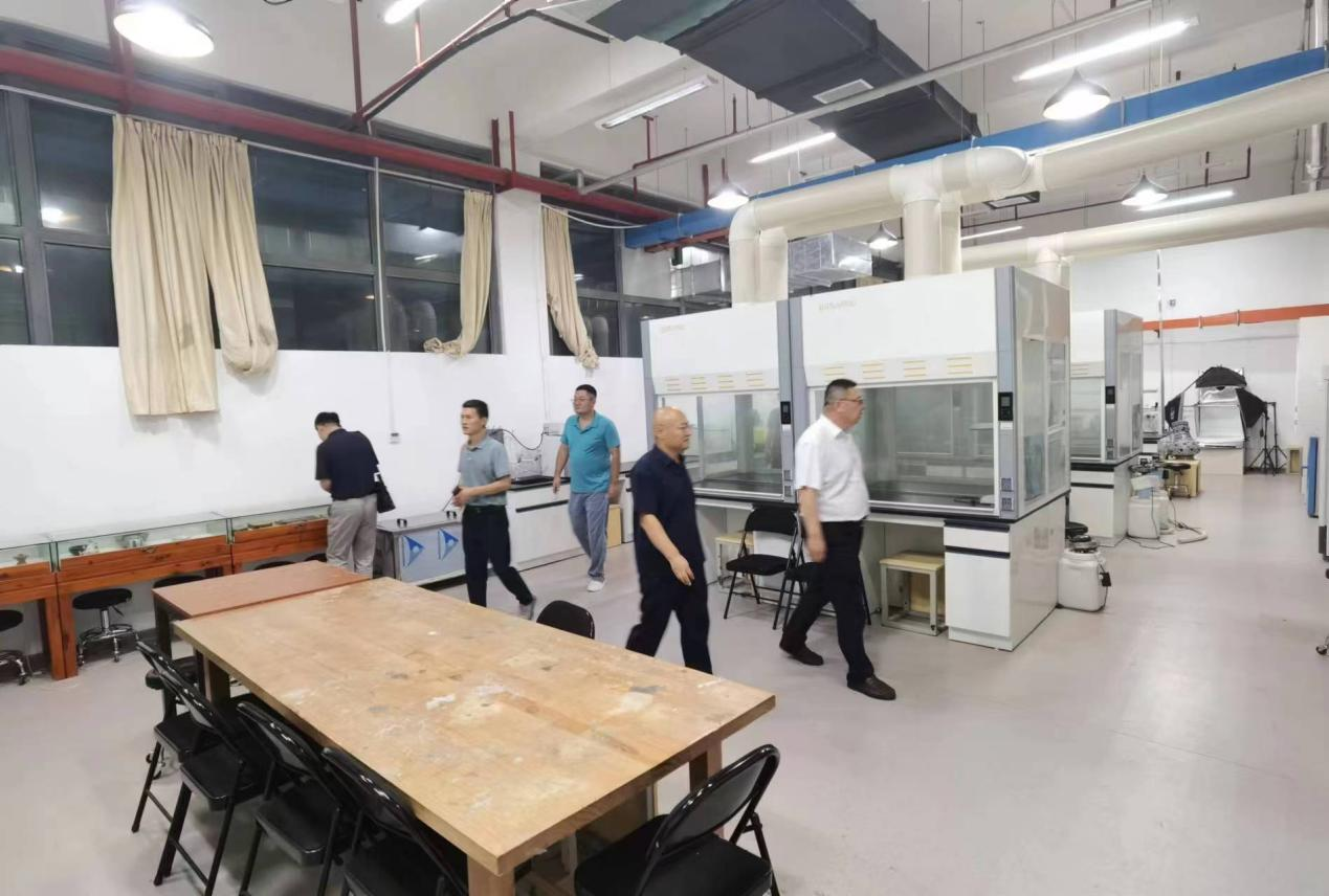 會議結束后,徐磊院長帶領山東省文物保護修復與鑒定中心王斌一行參觀了學校的文物保護與修復專業實驗室。