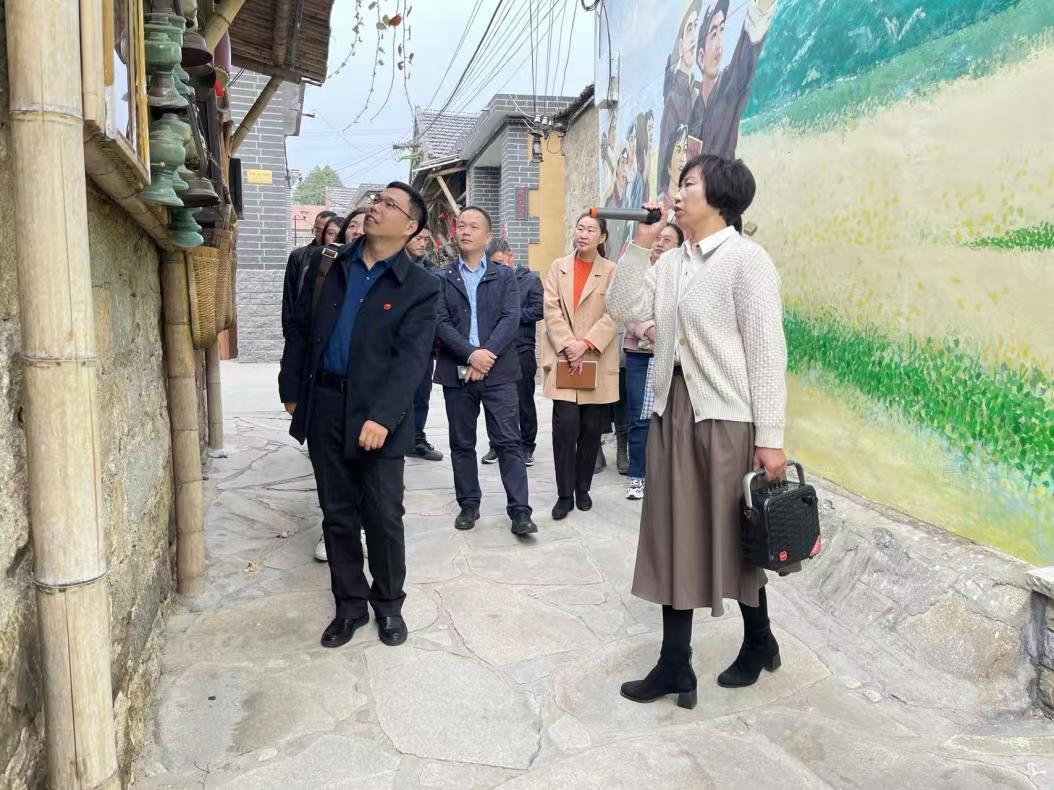 (一)實地調研環節:人文藝術學院黨總支及教工二支部黨員代表前往馬套村進行實地調研,先后參觀村內古槐路、村史館及茶葉生態園,通過村支部黨員的現場講解,支部黨員了解到馬套村整體規劃和黨建工作的先進做法,以及目前面臨的難題。