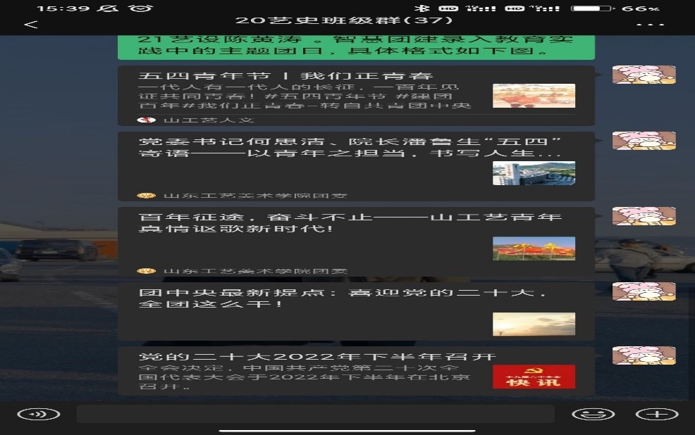 為弘揚五四精神,慶祝中國共產主義青年團成立100周年,激勵青年學生堅定理想信念,綻放青春力量,以昂揚的斗志和精神狀態迎接黨的二十大勝利召開,人文藝術學院團總支于五四青年節開展“青春心向黨,建功新時代”線上主題團日活動,各基層團支部參加。