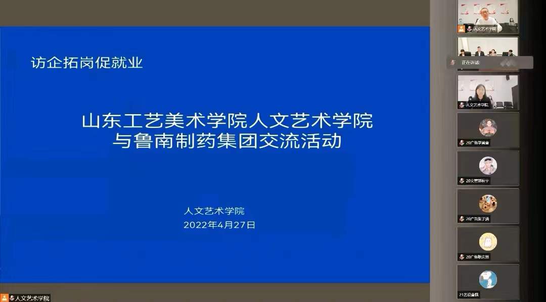 為深入做好就業指導工作,進一步提升學生的職業素養和求職競爭力。4月27日下午,人文藝術學院召開就業指導講座及校園招聘宣講,活動采取線上與線下相結合的方式進行,魯南制藥集團副總經理李寶杰、魯南制藥集團招聘總監宋祥云、魯南制藥集團招聘經理潘曉帥和互聯網大事業群HR主管楊淑超應邀參加會議,院長潘魯生出席會議并講話,會議由人文藝術學院書記陳慧主持。