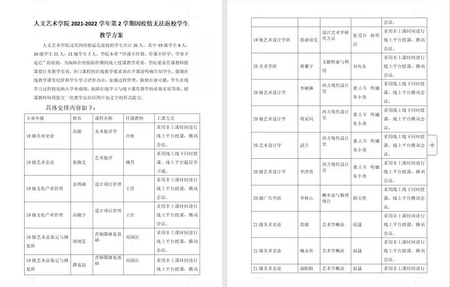 3月30日,按照學校統一部署,人文藝術學院全面轉為線上教學。