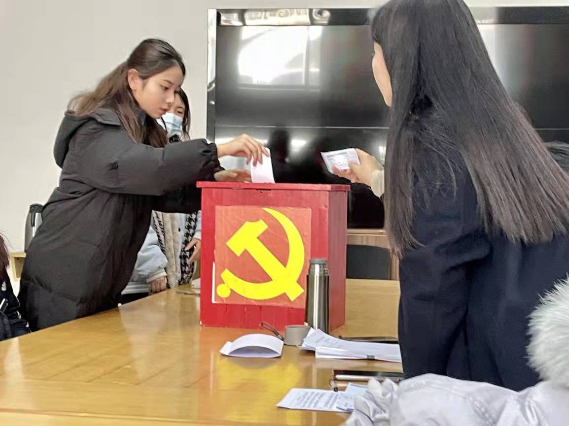 會議開始,支部書記徐亞辰宣布了本次大會議題和會議主要流程。會上,李昊鵬、俞書濃、王英梓3名預備黨員同志匯報預備期間的思想、工作、學習情況。接著,支部委員會介紹了3名同志在預備期間的教育考察情況。之后,與會黨員發表意見,對3名同志能否轉正進行充分討論。最后,與會正式黨員采用無記名投票方式進行表決。3名預備黨員均全票通過,被接收為中共正式黨員。