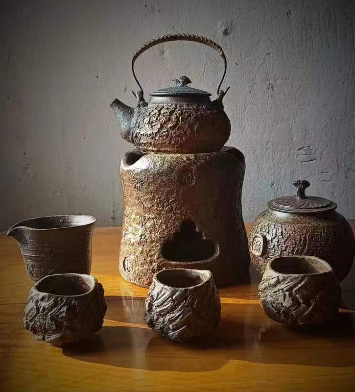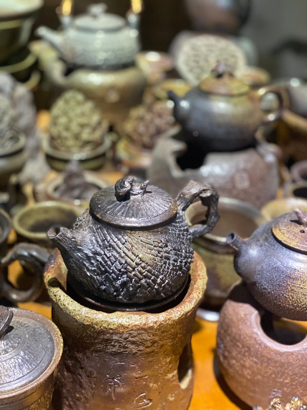 婁偉向回訪組詳細介紹了公司概況、品牌創立、產品開發、非遺傳承以及培訓后創新發展等情況。婁偉說培訓學習中收獲很大,通過專家教授的講座提升了他在創作中的品牌意識,拓展了產品研發思路。他獨創香灰作釉的燒制技藝,創立的泰山“福燒香”品牌,作品利用泰山老巖泥手作為器,取泰山名寺古剎殿前的香灰入泥入釉,再依從傳統的古法燒陶工藝入窯高溫多次煅燒而成。目前產品有茶器、花器、香器、福器等四個系列,將泰山文化及中國優秀傳統文化元素融入產品創新,“福香燒”在柴窯慢火中天然窯變產生古拙、質樸、獨特、極簡的風格,其中所寄托的福佑讓人愛不忍釋。目前他正在產品創新、文化禮品研發、文旅研學、民宿等一體化方面進行不斷探索和發展中。