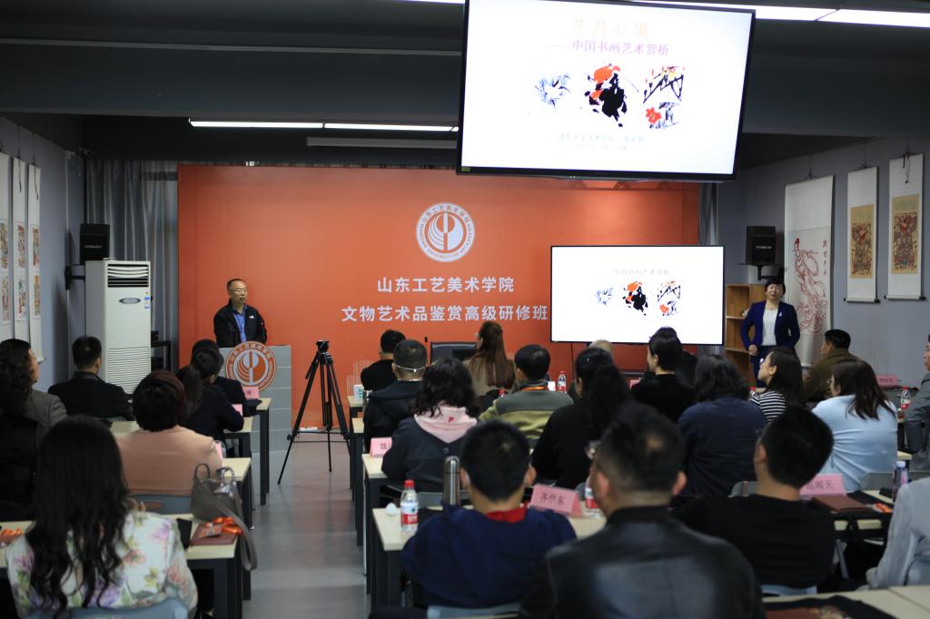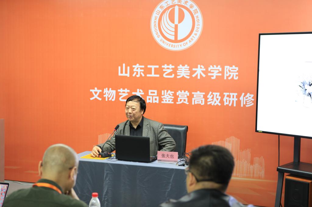 研修班首堂課程為《藝乃心境——中國書畫藝術賞析》,由清華大學美術學院張夫也教授主講。張夫也教授認為,文物藝術品鑒賞的技巧是比較,是廣聞博覽,是史論積累,更要重視創作實踐。他由文物藝術品鑒賞需要把握的環境、民族、時代、科技等諸要素展開講解,旁征博引,深入淺出,通過理論與實例相結合的講解方式,傳授了文物藝術品鑒賞的技巧、方法,傳達了藝術之美,拓寬了學員們對藝術作品的解讀思路