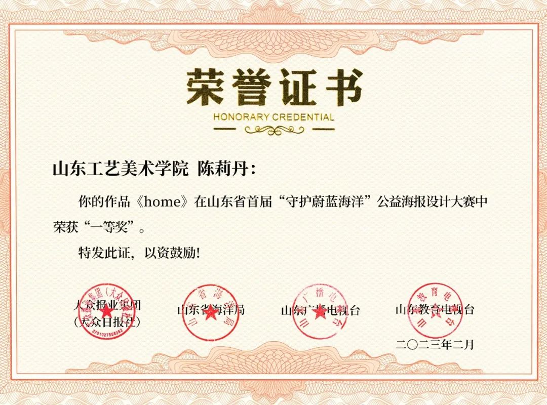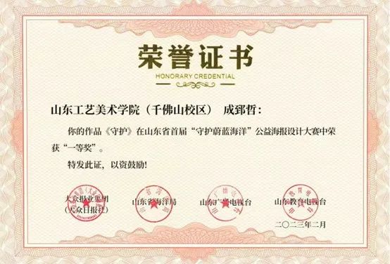 近期,由大眾報業(yè)集團(大眾日報社)、山東省海洋局、山東廣播電視臺、山東教育電視臺聯(lián)合主辦的山東省首屆“守護蔚藍海洋”公益海報設(shè)計大賽獎項揭曉,經(jīng)過經(jīng)初步評審、網(wǎng)絡(luò)投票、專家評議、媒體公示等程序,應(yīng)用設(shè)計學(xué)院視覺傳達設(shè)計(印刷方向)陳莉丹同學(xué)設(shè)計作品《home》及成郅哲同學(xué)設(shè)計作品《守護》均榮獲一等獎,專業(yè)教師李鳳華榮獲“優(yōu)秀指導(dǎo)教師稱號”。