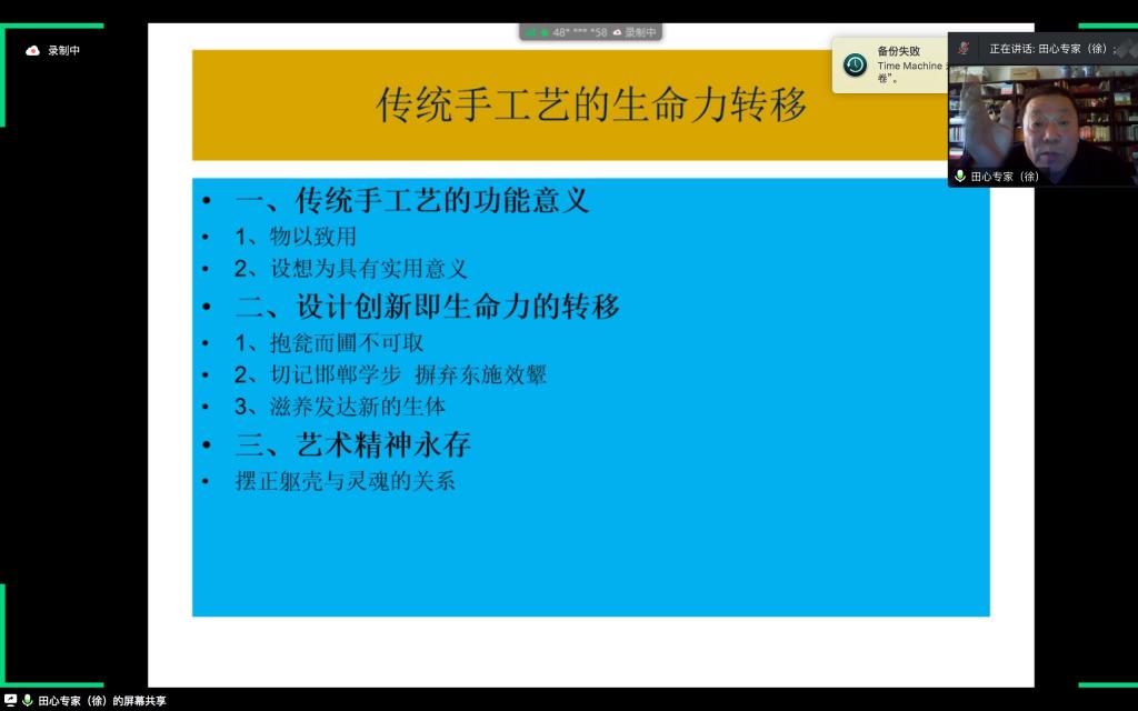 2022年4月5日下午,由學(xué)校教務(wù)處主辦、應(yīng)用設(shè)計(jì)學(xué)院承辦的學(xué)術(shù)講座《傳統(tǒng)手工藝的生命力轉(zhuǎn)移》在線上(騰訊會(huì)議)舉行。本次講座特邀歡迎來(lái)到公海7108線路原人文學(xué)院院長(zhǎng)、碩士研究生導(dǎo)師徐思民教授主講,教師及學(xué)生共計(jì)二百余人參加講座。