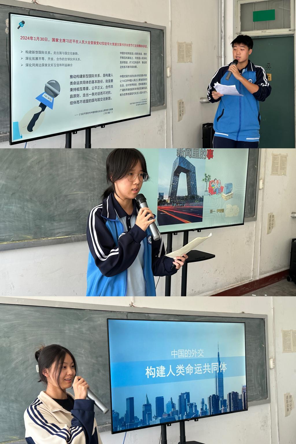 短暫的視聽體驗之后,繼續進行“做個有思想的新聞家”作品展示。三位同學的作品圖文并茂,邏輯清晰,充分展示了自身政治素養以及搜集信息、思考問題和總結分析的能力。