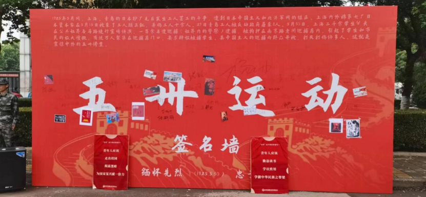 2023年5月30日在“五卅運動”爆發98周年之際,由學生工作部(處)(武裝部)指導,學校大學生國防志愿者聯合會承辦的“五卅手繪簽名”活動在長清校區順利舉行。