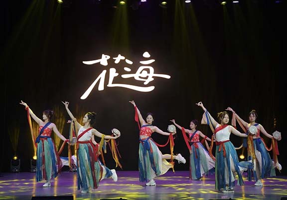 以舞步丈量五千年文明根脈,用身姿勾勒中華民族的精神圖騰。造型藝術學院的舞蹈《青春起舞筑夢中華》用躍動的舞姿映射出民族文化互鑒共榮的璀璨光芒;應用設計學院的舞蹈《歡聚》以肢體為筆墨,深情書寫民族文化的傳承史詩;現代手工藝術學院的舞蹈《灼華》生動詮釋“桃之夭夭,灼灼其華”的文化魅力。