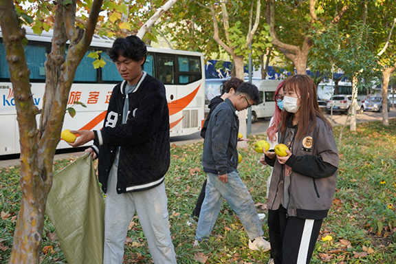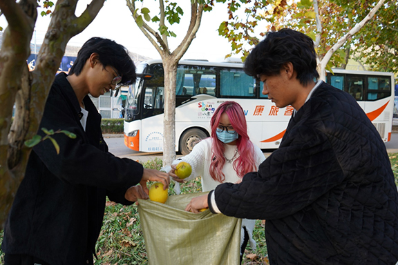 采摘開始,大家一起搬梯提籃,穿梭于木瓜樹之間。看那木瓜,帶著秋的顏色掛滿了枝頭,壓彎了樹身,墜在樹稍上扎堆簇擁,綻開著笑顏,象征著山工藝校園的秋的青春洋溢。同學(xué)們一起摘下一顆顆果實,一起沉浸在勞動的歡聲笑語中,不但展現(xiàn)了一片熱火朝天的場景,更是描繪了一幅屬于山工藝的金秋和諧畫卷。大家互幫著采摘,互幫著抬拉,歡聲笑語蕩漾在這段閑暇美好的勞動時光,不一會兒的工夫,木瓜盛滿了袋子。