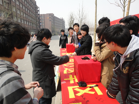 旱災(zāi)無情,大愛無疆,一方有難,八方支援。3月27日、28日,我校團(tuán)委積極響應(yīng)省團(tuán)委抗旱救災(zāi)的號召,在長清校區(qū)十字路口處面向全校師生發(fā)起“一人一瓶水,愛心送旱區(qū)”特別行動,用捐款的形式情獻(xiàn)旱區(qū)人民。