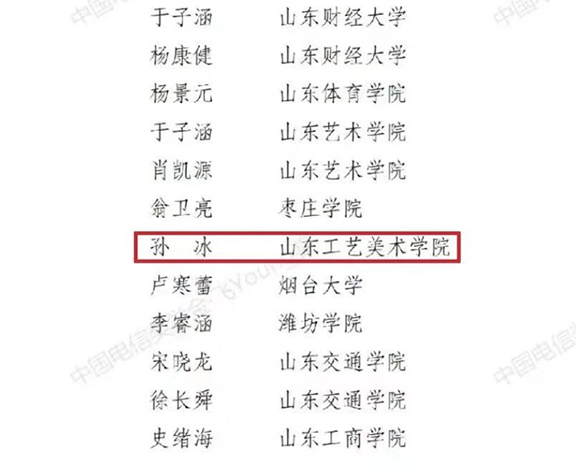 11月8日,2021年度“中國電信獎學金”獲得者名單公示,我校來自工業(yè)設計學院的孫冰同學在本次獎學金評選中表現(xiàn)優(yōu)異、脫穎而出,獲得“中國電信獎學金·飛Young獎”。