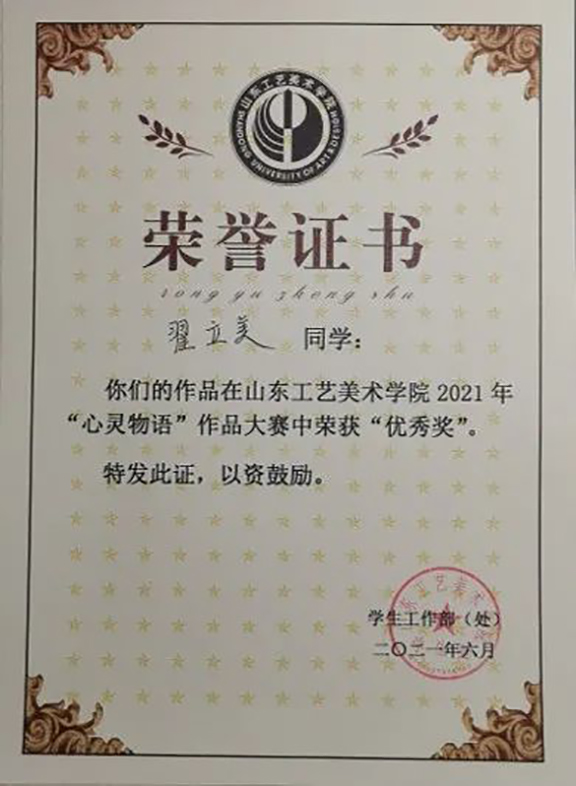 學習方面,翟立美上課認真聽講,積極配合老師,課下獨立完成作業(yè),認真對待專業(yè)的學習,嚴格要求自己。她熱愛自己的專業(yè),期待靈感迸發(fā)的瞬間,更享受設計與制作的過程。