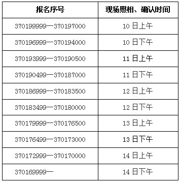 由于歡迎來到公海7108線路不設報考點,我校不負責2014年11月10日—14日現場確認的繳費照相工作,請考生到本人網報時所選擇的報考點(憑用戶名和密碼登錄中國研究生招生信息網查詢自己已填報的報考點信息)進行現場照相和信息采集。未進行現場確認網報信息的考生其網報信息無效,將無法參加考試,請考生予以關注。 一、現場確認 1.報考點選擇3701濟南市招生辦公室的考生請于11月10日—14日8:30—16:30持本人第二代居民身份證、學歷證書(普通高校、成人高校、普通高校舉辦的成人高校學歷教育應屆本科畢業生持學生證)和網上報名編號到濟南皇亭體育館(濟南市泉城路15號)進行現場照相并確認報名信息。因報考點人數較多,請嚴格遵守以下現場確認時間安排: (1)現場確認時間